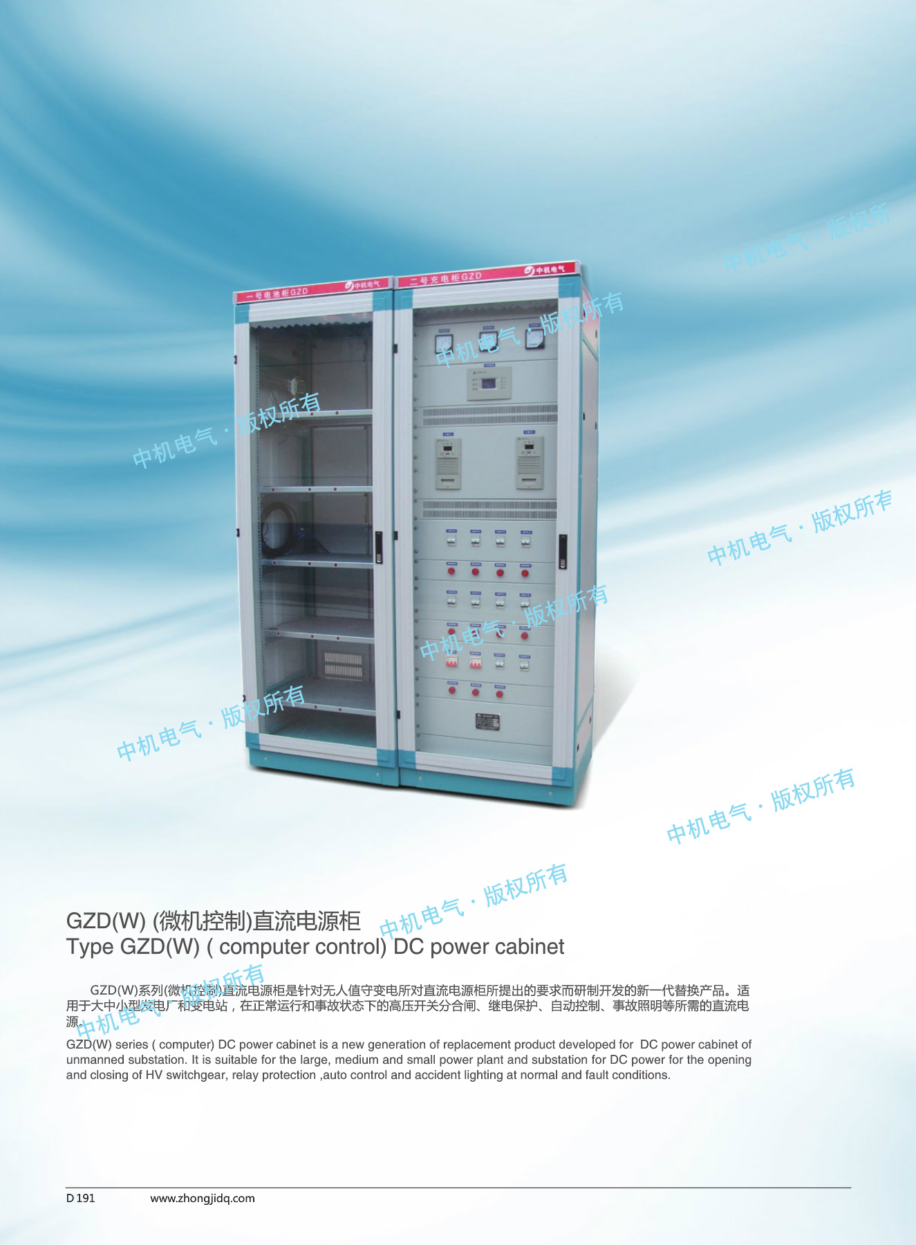 簡要描述:GZD直流電源柜應用大中小型發電廠和變電站,作為正常運行和事故狀態下的高壓開關合閘、繼電保護、自動控制、事故照明、燈光和音響信號等所需的直流電源。 也可應用于冶金、鐵道...